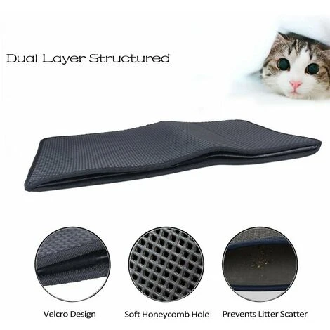 AIDE À LA PROPRETÉ. Le tapis litière pour chat, avec son design nid d’abeille en partie supérieure, collecte efficacement la litière provenant des pattes du chat et sortant de la cage. La litière tombe dans des trous étanches suffisamment larges et profonds pour contenir de grandes quantités de litière. Convient à tous les types de litières pour chats, telles que les litières agglomérantes minérales ou végétales.