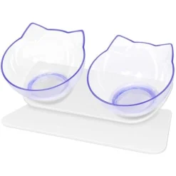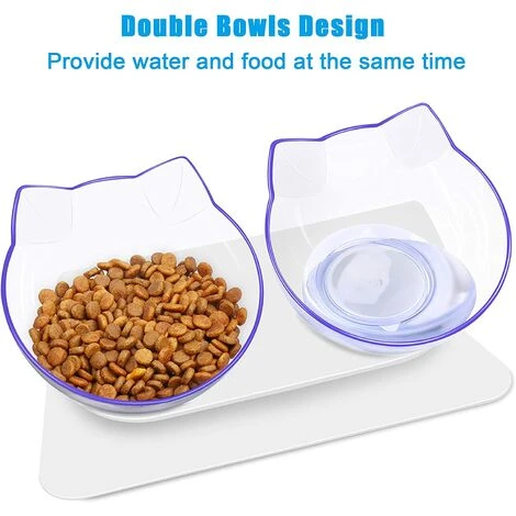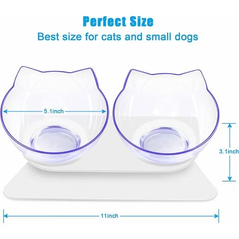 - Conception à double bol : bol de nourriture et d’eau pour chat 2 en 1 Les grands côtés inclinés réduisent la chute de la nourriture pour chat, convient aux chats à surface plane. Le bol transparent permet de contrôler la quantité de nourriture et est spécialement conçu pour les petits chiens et chats.