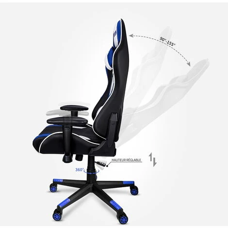 3.Multi fonctions; inclinaison de 90° à 155°, hauteur du siège réglable, accoudoir à tringlerie recouvert de pu épais et souple, pivotant sur 360°, base en acier à 5 points avec roulettes robustes à roulement doux, coussin d’appui tête et coussin lombaire amovibles