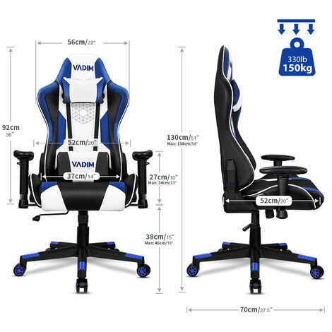 1.Chaise parfaite pour gaming; vadim se consacre à la fabrication des meilleurs fauteuils de jeu pour les joueurs professionnels. choisissez nous, et améliorez votre expérience de jeu ! dimensions : 20,48x 21,11x 51,19-54,34; dimensions de l’espace d’assise : 14,6 »x 20,5 »; capacité de poids maximale : 330 livres