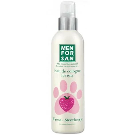 Menforsan Eau De Fresa chat est le produit cosmétique sans odeur fascinante alcool de fraises. parfum naturel doux et frais, ce produit fera la maison pussycat impose sa présence l’amélioration de son agréable compagnie. | 125 ml | arôme agréable de fraise | PH neutre | Pas d’alcool