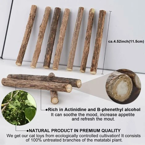 les incisives. Il encourage également le chat à faire de l’exercice et promeut la motilité gastro-intestinale. - Fraîcheur durable et réutilisable – Les bâtons pour chat au Matatabi sont refermables dans un emballage écologique pour une excellente conservation pour chaque utilisation. Après que le chat ait joué avec les bâtons, vous pouvez couper la partie rongée