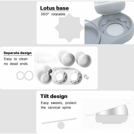 【D’alimentation Scientifique】La conception inclinée à 15 ° peut protéger la colonne cervicale du chat et aider à relâcher la pression sur le cou de l’animal, à faciliter son alimentation et à promouvoir la santé du système digestif. La profondeur du bol convient aux habitudes alimentaires des chats. Le double bol peut être tourné à 360 ° pour ajuster l’angle, offrant une expérience culinaire plus confortable pour les animaux de compagnie.