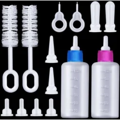 Contenu de l’emballage : l’ensemble comprend 2 biberons, 10 tétines de rechange en silicone et 2 brosses de nettoyage spéciales, adaptées aux chiots, chatons et petits animaux sauvages ; Les tétines du biberon se présentent sous différentes formes ; Peut être appliqué à différentes fins, répondre aux différents besoins des petits animaux de compagnie, conçu pour nourrir à la main les chiots, chatons et autres petits animaux nouveau-nés. alimentation précise, il peut contrôler l’apport alimentaire, empêcher l’apport trop ou trop peu, plus pratique, mamelons doux et brosse de nettoyage; Il est résistant aux morsures, résistant à la chaleur, flexible, ne s’effondre pas, ne fuit pas et la bouteille peut être réutilisable, la bouteille est très douce, facile à presser et n’endommagera pas les dents de votre animal. Matériaux sûrs : fabriqué en silicone de haut poids moléculaire, sain et durable, sûr et non toxique, réutilisable et lavable; Le corps du biberon est doux et spécialement conçu pour les chiots ; Le propriétaire peut presser le corps du biberon pour que le lait puisse être pressé dans la bouche des chiots ; Le biberon est en plastique de qualité et la tétine est en caoutchouc souple, solide et robuste, très sûr pour votre petit animal de compagnie. Conseils d’utilisation : il est particulièrement adapté aux petits chiots qui n’ont pas la capacité de téter, et le la taille du trou du mamelon peut être adaptée à l’animal spécifique; Veuillez d’abord laver le biberon, le couvercle et la tétine avec de l’eau chaude avant utilisation, puis utilisez l’aiguille pour ouvrir un petit trou ou d’autres outils pour dessiner une croix sur la tétine. Lorsque vous pressez le biberon pour animaux de compagnie, le liquide s’écoule et vous pouvez ensuite nourrir l’animal. Réglage, voir la quatrième image pour plus de détails. Facile à utiliser et à nettoyer : ce biberon offre une surface antiadhésive qui permet aux produits de sortir ; Ce biberon est entièrement lavable au lave-vaisselle, sinon il suffit de le nettoyer avec de l’eau chaude savonneuse pour faire le travail ; Une fois nettoyé, placez le moule dans un espace de stockage loin de la lumière directe du soleil jusqu’à la prochaine utilisation ^