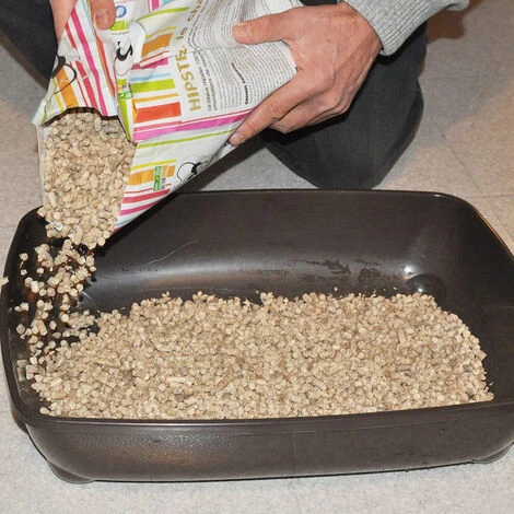 Pour éviter ce désagrément, vous versez une simple couche de litière dans le bac à litière vide. Si vous venez de laver le bac, assurez-vous qu’il est complètement sec avant d’y verser la litière absorbante HIPSTER. Sinon, la litière HIPSTER formera rapidement des amas solides qui resteront en surface.
