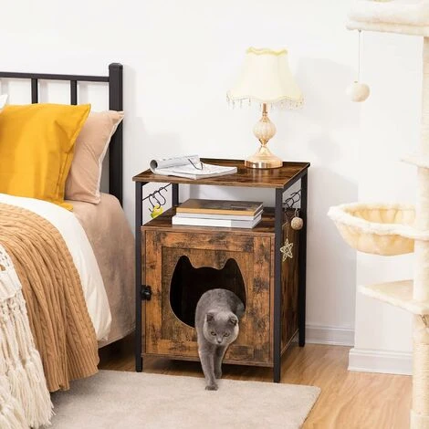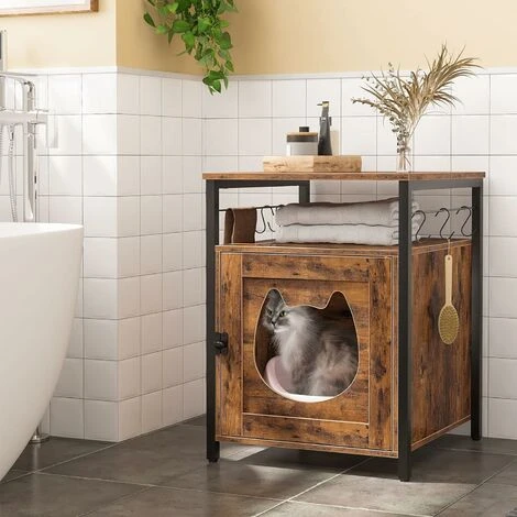 - Design Original : Vous voulez donner à votre chat une maison parfaite ? Cette maison de meuble litiere chat est un excellent choix, avec une entrée frontale mignonne en forme de tête de chat, elle attire les chats à aller et venir librement. Les panneaux rustiques se combinant avec un cadre un métal, Maison pour chat plutôt une œuvre d’art que votre famille et vos amis admireront!