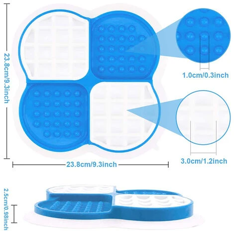 2. 【Conception unique】 Notre tampon anti-fuite unique pour le bain de chien a une ventouse antidérapante en bas et ne t tomber. La zone de fuite a des bords surélevés pour empêcher les aliments de se répandre et pour garder votre salle de bain, douche ou comptoir propre. un motif circulaire, le design unique réduit le taux d’alimentation du chien, réduit les gaz, améliore la digestion et favorise la santé de l’estomac de l’animal. De plus, lécher la nourriture peut masser la langue de l’animal, favoriser une haleine fraîche et une bonne santé des gencives, calmer le chien et réduire l’anxiété.