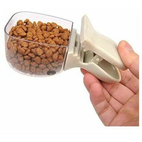 Fonction 2 en 1cuillère et support de sac pour aliments pour animaux.