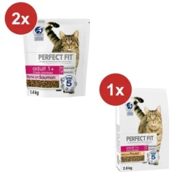 Aliment complet pour chats adultes stérilisés – Riche en Poulet ou en Saumon. Mises au point avec les vétérinaires et les nutritionnistes du centre de WALTHAM, les croquettes Perfect Fit combinent 5 bénéfices qui répondent à 5 des besoins les plus communs à tous les chats, quel que soit leur âge ou leur style de vie, dans sa formule unique Perfect Fit Total 5 : Défenses naturelles fortes; Fonctionnement urinaire sain; Digestion saine, Peau et pelage sains; Maintien du poids de forme & condition physique.