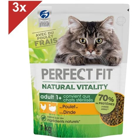 Les croquettes pour chats PERFECT FIT Natural Vitality sont fabriquées avec des ingrédients naturels et des protéines animales de haute qualité pour lui apporter la nutrition dont il a besoin et le goût qu’il aime.