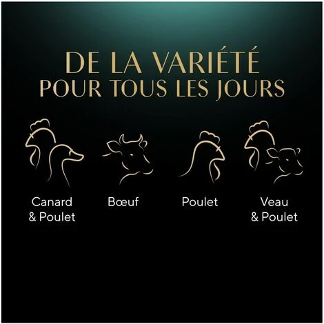 Aliment humide complet pour chats adultes – 4 variétés terrine pour chat coffret traiteur (Au Jambon et aux Carottes / Au Canard / Au Boeuf et aux Légumes / Au Poulet). Grâce à leurs délicates bouchées, cette sélection de menus soigneusement élaborés avec les saveurs qu’il préfère fera ronronner votre chat de plaisir. La gamme Terrines Classiques pour chats de Sheba vous offre un assortiment de recettes avec une texture exquise, dont les chats se délectent depuis plus de 30 ans.
