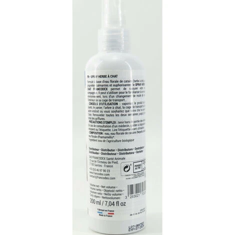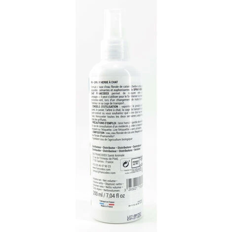 - Formulé à base d’eau florale de cataire (herbe à chat), aux propriétés calmantes et euphorisantes, le SPRAY HERBE À CHAT permet de rassurer votre petit compagnon.